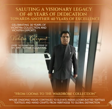 The story of Indian textiles is more than just threads—it is a narrative of culture, craftsmanship, and a lifetime of dedication. Today, we celebrate the journey of Sh. Anil Kumar Aggarwal, the visionary founder of Vichitra Collection and Vichitra Exports.